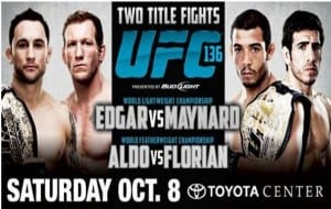 The wait for the much-anticipated third fight between UFC® lightweight champion Frankie Edgar and unbeaten top contender Gray Maynard is finally over. The Ultimate Fighting Championship® announced today that Edgar and Maynard will settle the score when the organization returns to the Toyota Center in Houston, Texas on Saturday, Oct. 8. If one major title fight wasn’t enough, UFC officials also confirmed that UFC featherweight champion Jose Aldo will defend his crown against the always-dangerous Kenny Florian.
