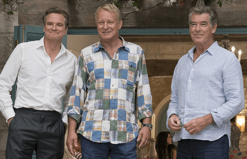 In 1979 young Donna, Tanya and Rosie graduate from Oxford University — leaving Donna free to embark on a series of adventures throughout Europe. On her journeys, she makes the acquaintances of Harry, Bill and Sam — the latter whom she falls in love with, but he’s also the man who breaks her heart. In the present day, Donna’s pregnant daughter, Sophie, dreams of renovating a taverna while reuniting with her mother’s old friends and boyfriends on the Greek island of Kalokairi.