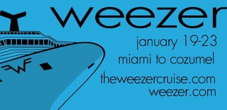 Teaming up with Carnival, who also did the VH1 cruise, Weezer has planned a five day music ocean-going party dubbed The Weezer Cruise (original name huh?). For $799 per person you get to cruise from Miami to Cozumel, Mexico and back with the likes of Dinosaur Jr, Sebadoh, Wawes, the Antlers, Yuck, Free Energy, and Sleeper Agent (booze not included).
