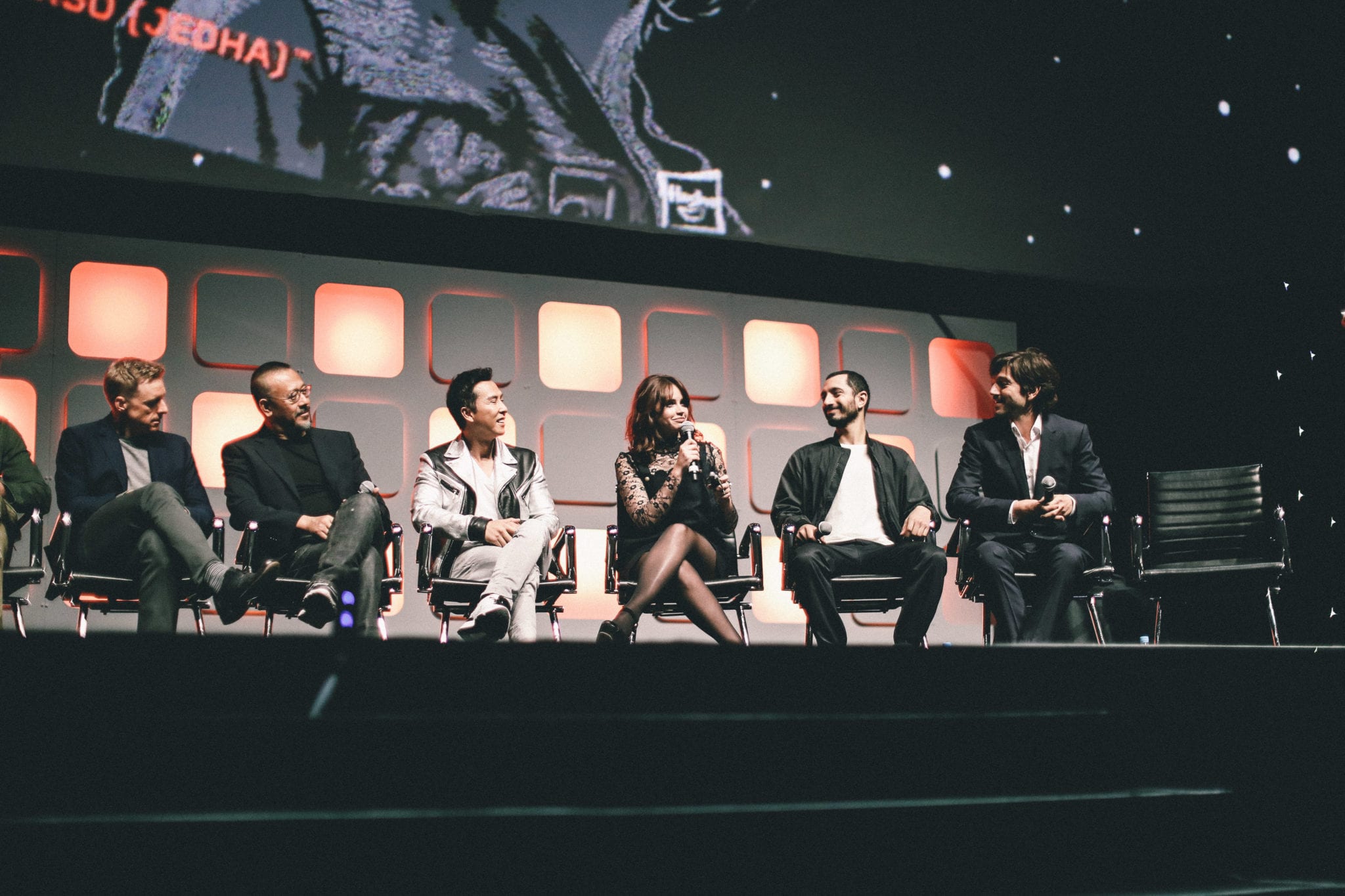 One panel focused on Rogue One: A Star Wars Story, the film slated to hit theaters later this year that takes place shortly before Episode IV: A New Hope, in which a Rebel Alliance team steals the plans for the Death Star. Gwendoline Christie, who plays Captain Phasma in the Star Wars saga, hosted the Rogue One panel which featured Lucasfilm president Kathleen Kennedy and cast members Felicity Jones, Diego Luna, Riz Ahmed, Donnie Yen, Jiang Wen, Alan Tudyk, Mads Mikkelsen, Forest Whitaker and Ben Mendehlson.
