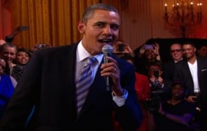 President Obama shows that he has a true passion for music! He sang a few frames of “Sweet Home Chicago” during a blues explosion at the White House on Tuesday (Feb. 21). Just over a month ago the President was singing an Al Green song at a fundraising event.