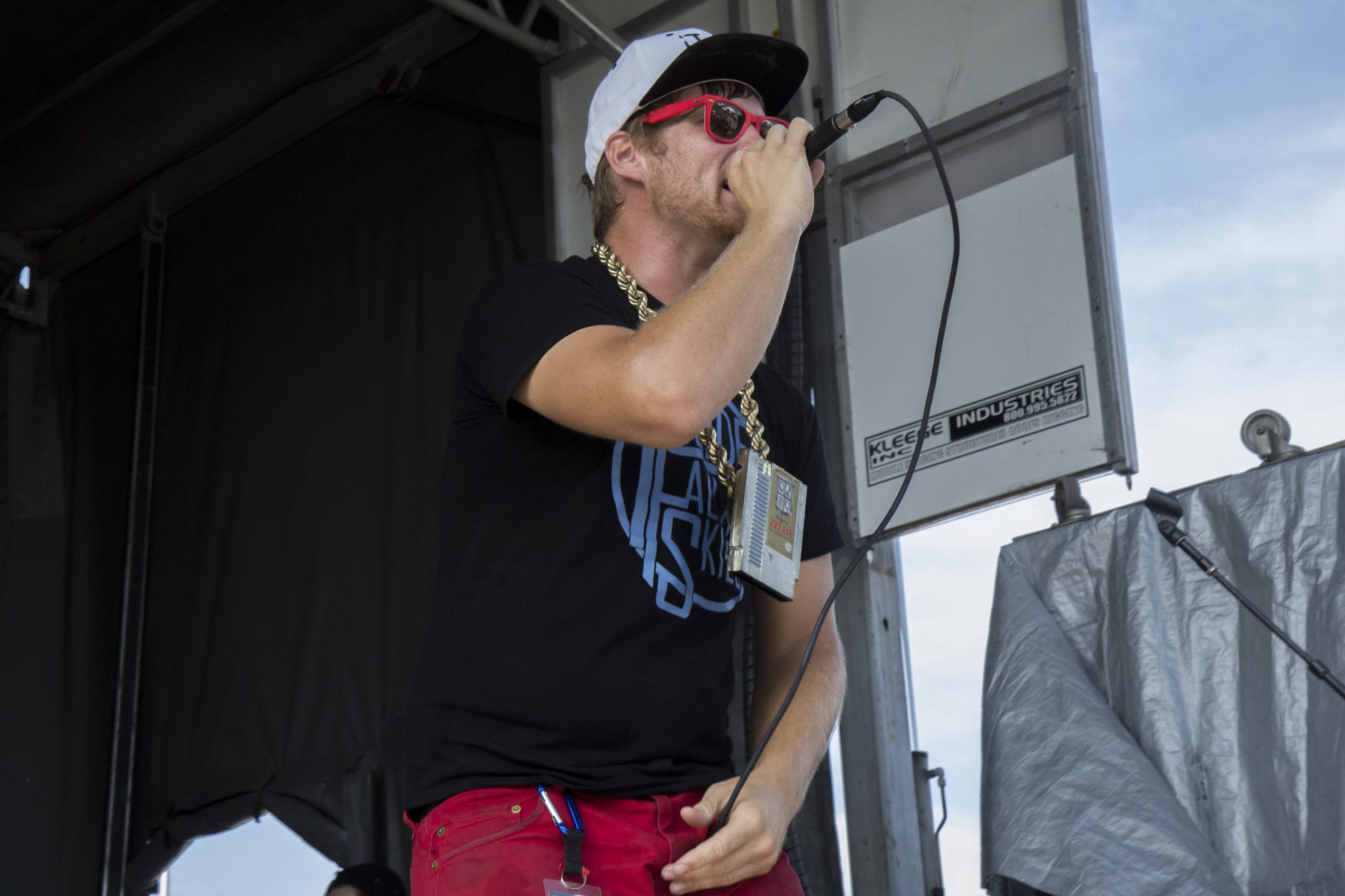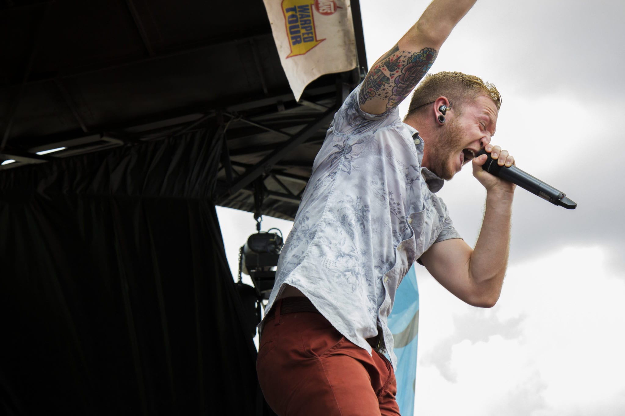 Warped Tour is a great place to discover new bands. After watching an outstanding performance by Forever The Sickest Kids on the Tilly’s stage, poppy tunes traveled from a stage nearby and caught my attention. Following the upbeat music, I discovered electro-pop artist Goldhouse rocking the Domo stage. He had the crowd dancing nonstop – even as rain began to strike the tops of the audience’s heads.