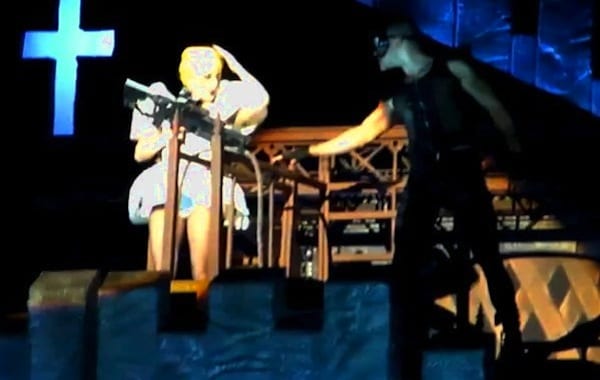 Lady Gaga suffered a concussion on Sunday when she was struck on the head by a pole during her world...